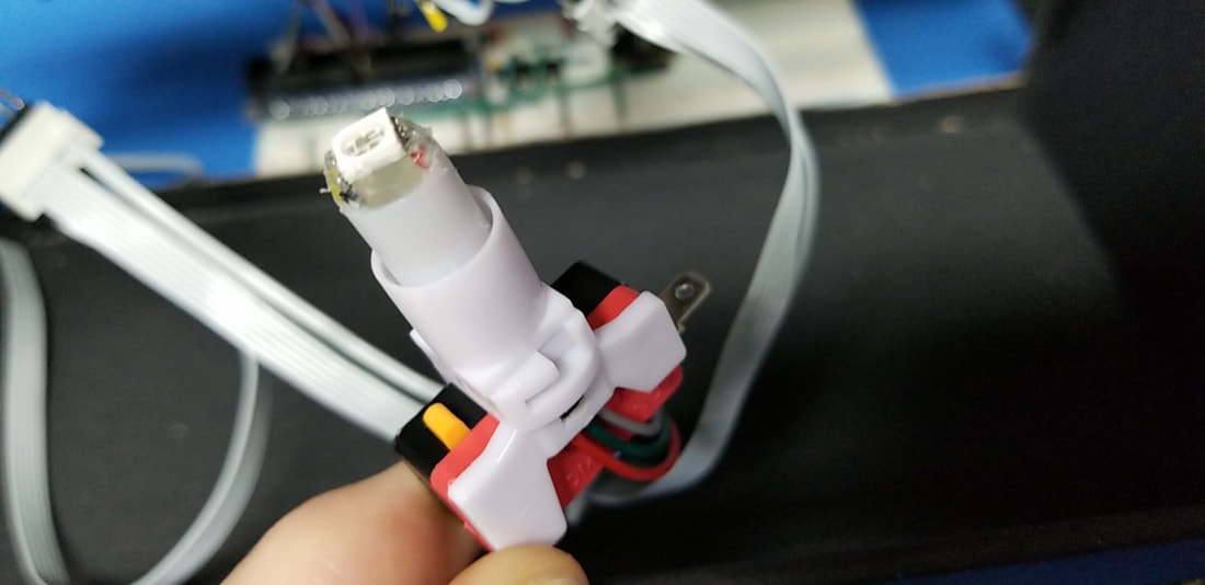 TO ELIMINATE THE SOLDERING ON EACH LED, WE DESIGNED AND 3D PRINTED A FRICTION FIT HOUSING THAT HOLDS THE LED IN WHILE ALSO MAKING THE CONNECTIONS BETWEEN EACH OF THE WIRES AND THE LED PADS. JUST PRESS THE LED INTO THE HOUSING AND YOUR DONE.