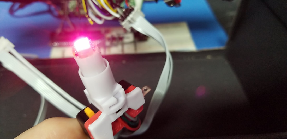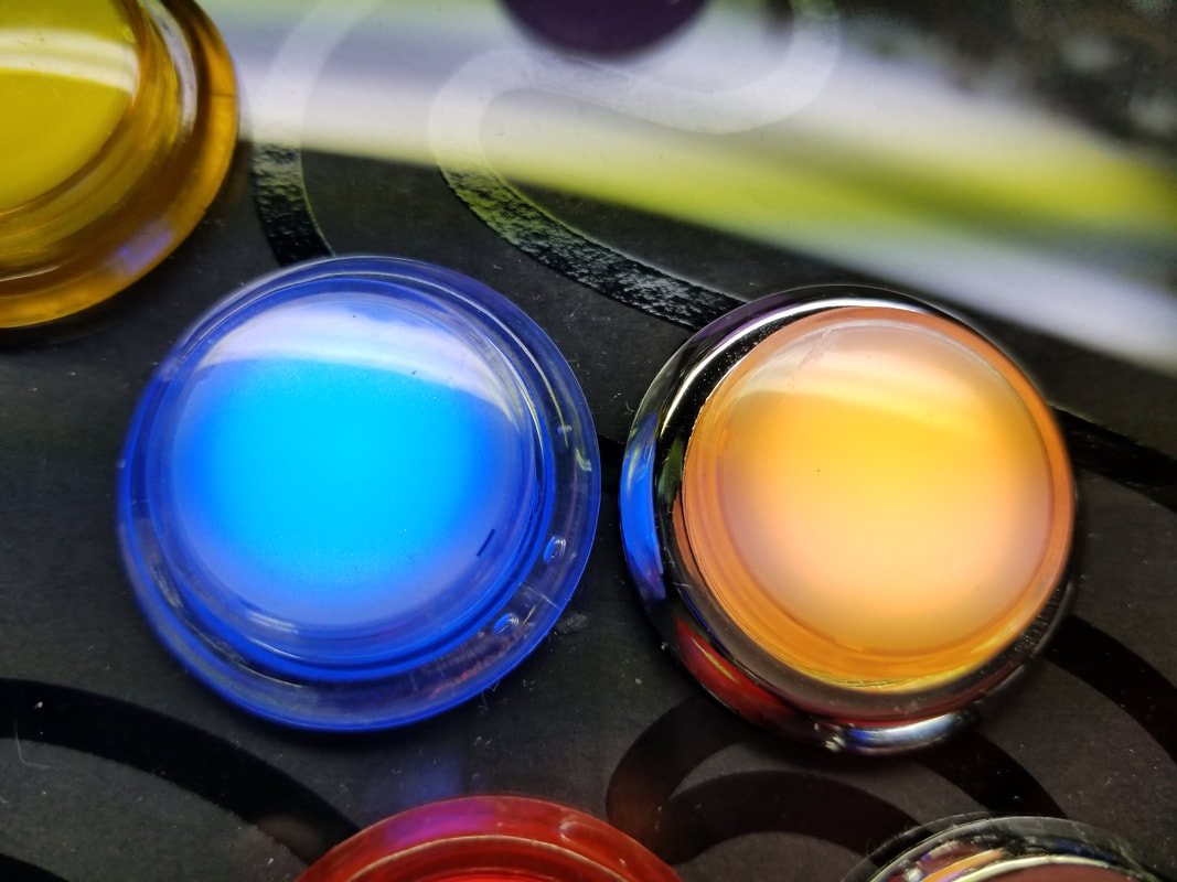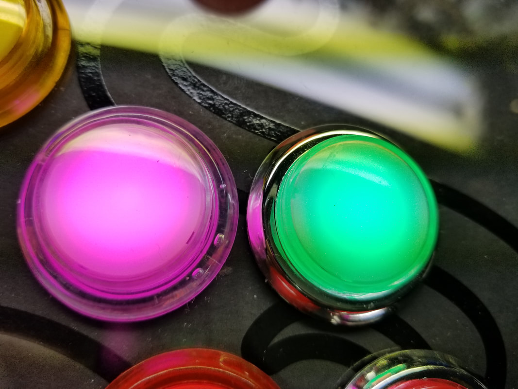 WE ARE USING STANDARD WHITE ILLUMINATED ARCADE BUTTONS. EACH BUTTON WILL BE MODIFIED TO USE ONE SK9822 RGB LED.