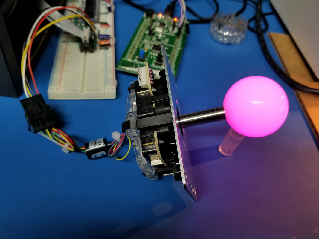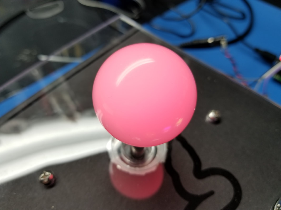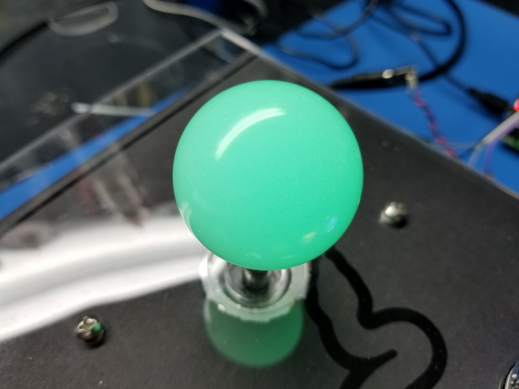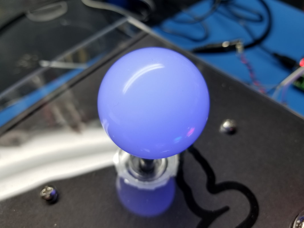 WE ARE USING SANWA JLF JOYSTICKS WITH REPLACEMENT HOLLOW SHAFTS AND TRANSLUCENT BALL KNOBS. EACH JOYSTICK WILL BE MODIFIED TO USE ONE SK9822 RGB LED.