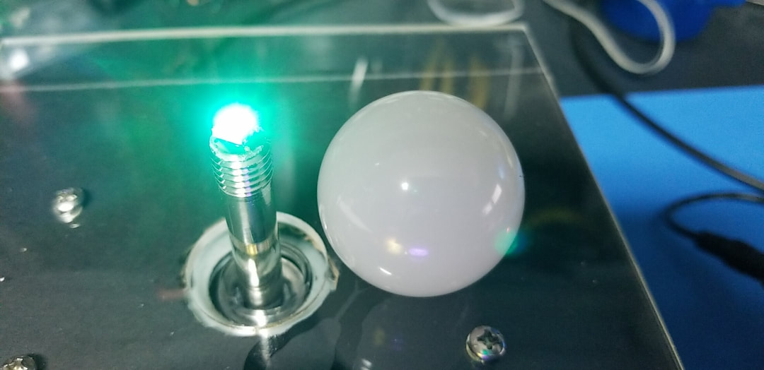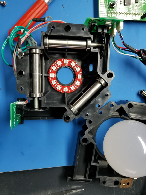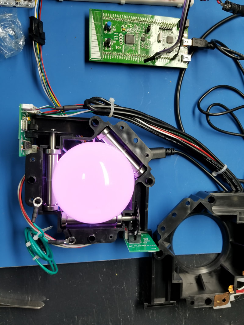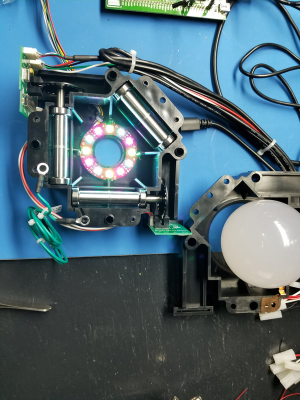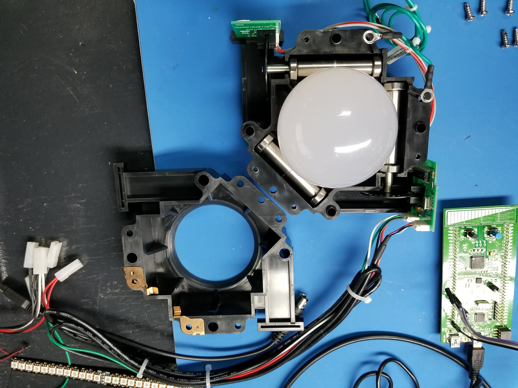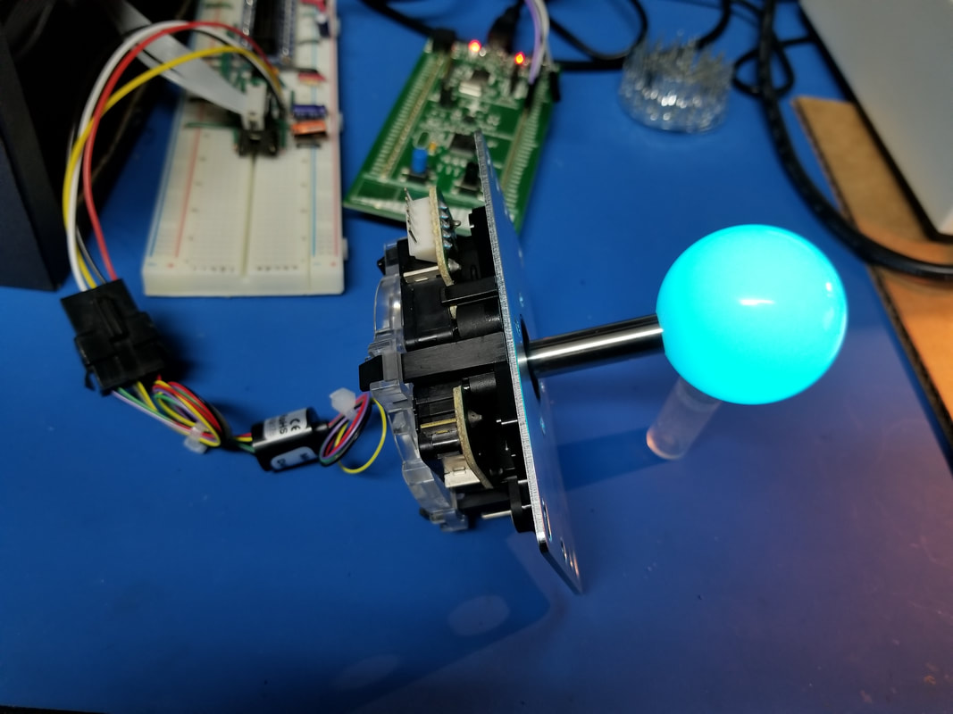 WE ARE USING SANWA JLF JOYSTICKS WITH REPLACEMENT HOLLOW SHAFTS AND TRANSLUCENT BALL KNOBS. EACH JOYSTICK WILL BE MODIFIED TO USE ONE SK9822 RGB LED.
