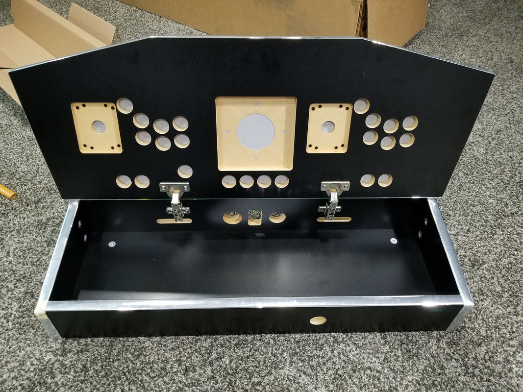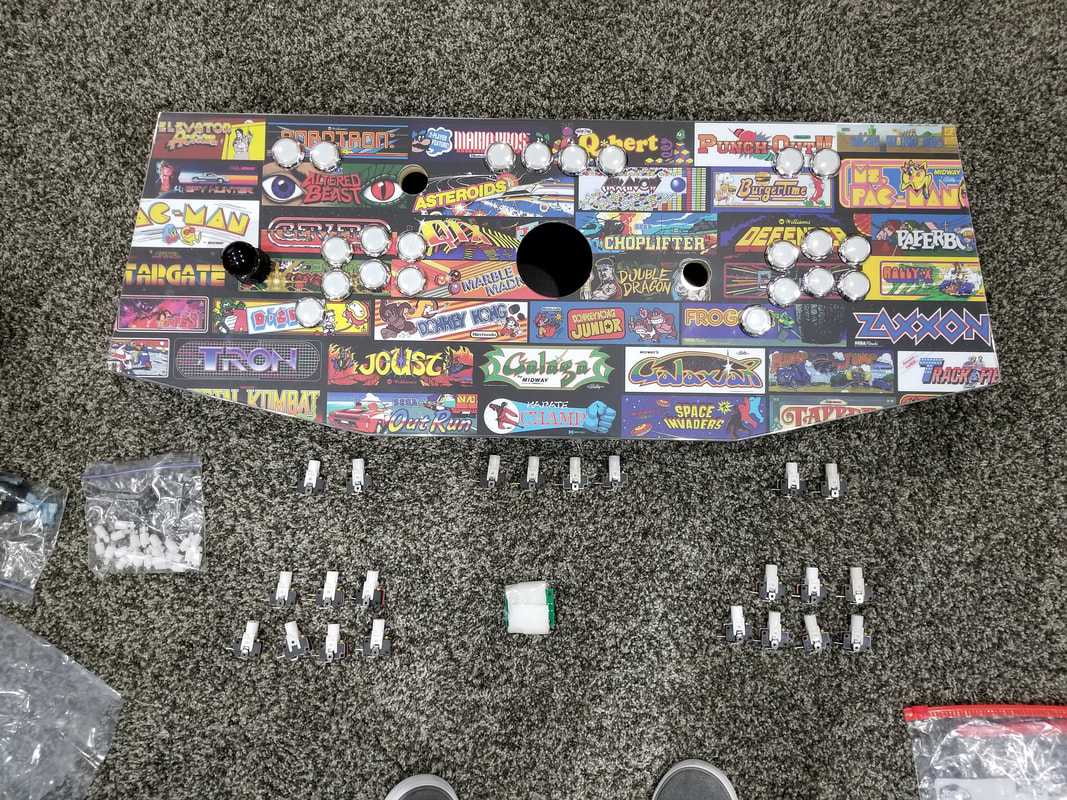 THE CONTROL PANEL FINALLY ARRIVED. OUR CUSTOM ARTWORK LOOKS AWESOME AND WITH AN HOUR OR SO OF ASSEMBLY WE HAVE AN AWESOME ARCADE CONTROL PLATFORM.