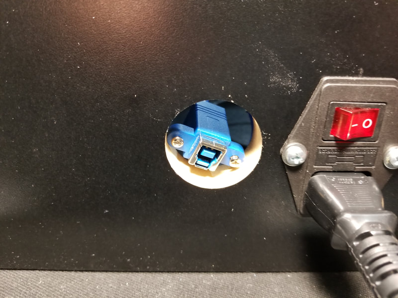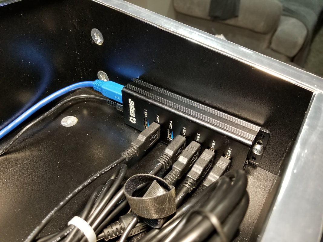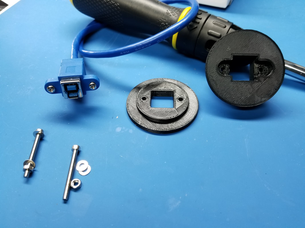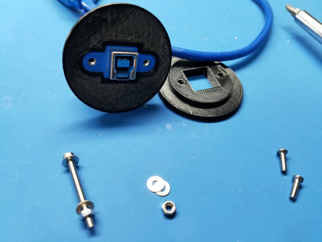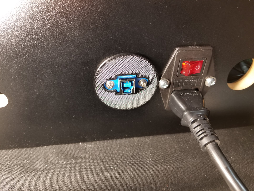 WE ADDED A 7-PORT HUB AND 3D-PRINTED A USB PLUG HOLDER THAT FITS SECURELY IN THE EXTRA REAR PANEL HOLE.