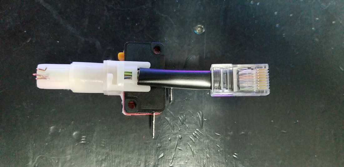 TO IMPROVE THE CONNECTORS, WE DECIDED TO USE RJ45 CONNECTIONS ALL SIX WIRES ARE CRIMPED INTO THE CONNECTOR AT ONCE.